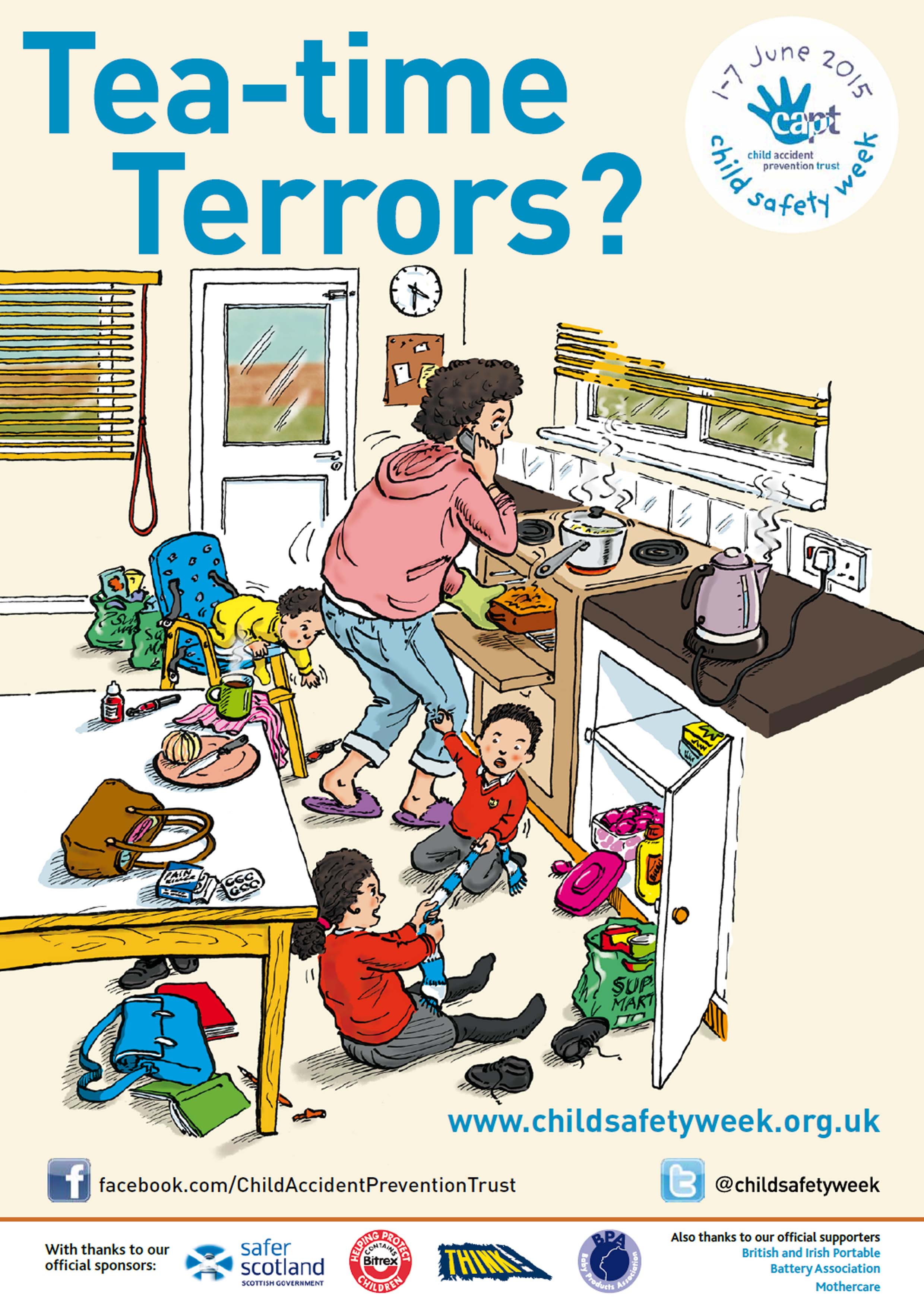 As part of Child Safety Week, CAPT is highlighting lots of potential accidents that can happen to children during the often stressful teatime period. As well as the dangers of the road, children are more than twice as likely to suffer a serious burn from 3pm to 6pm as they are during the morning.